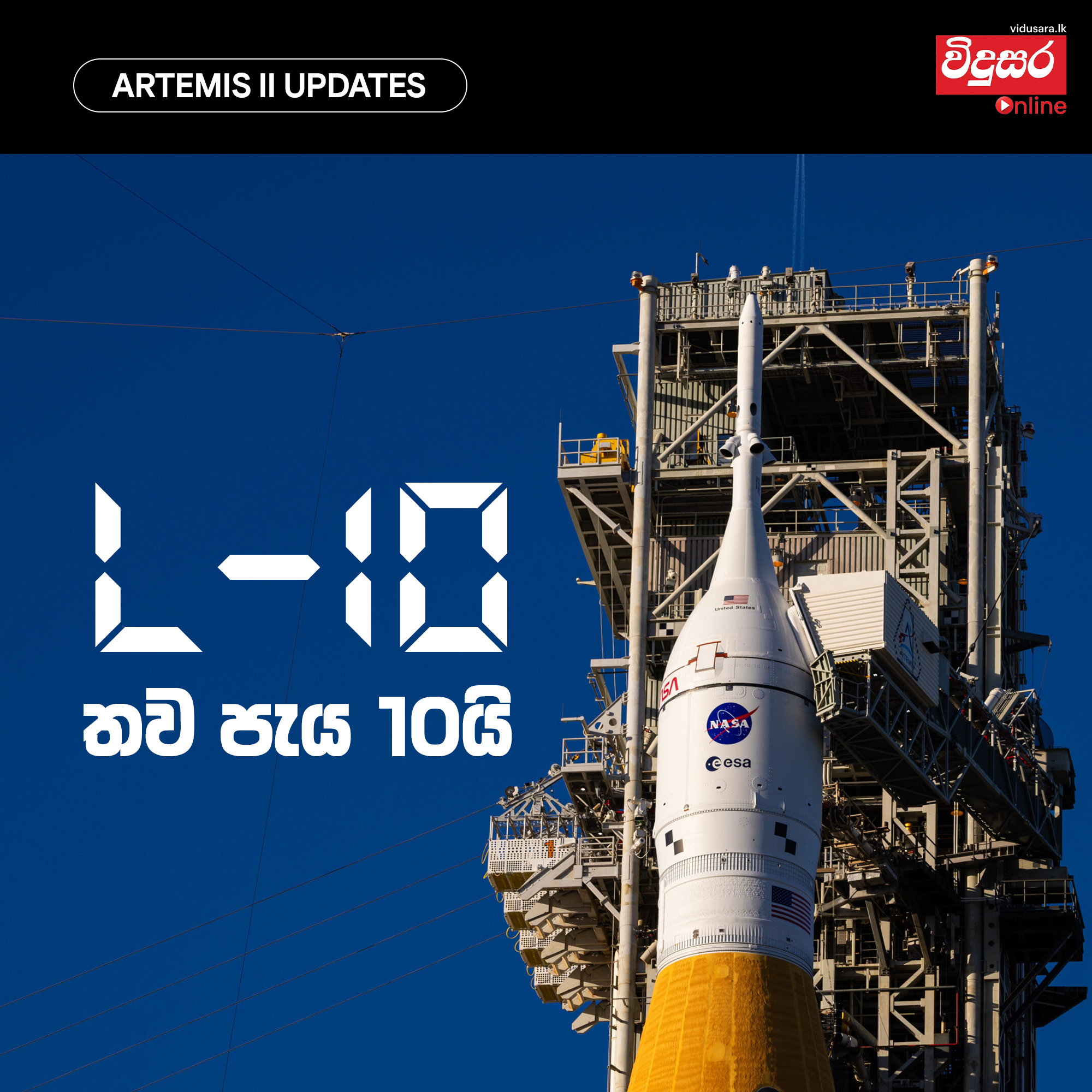 අඩ සියවසකට වැඩි කාලයකට පසු මිනිසුන් රැගත් අභ්යවකාශ යානයක් සඳ වටා ගමන් කරවීමේ NASA ආයතනයේ ඓතිහාසික ‘Artemis II’ මෙහෙයුම දියත් කිරීමට තවත් ඉතිරි ව ඇත්තේ පැය 10ක පමණ කාලක් පමණයි. ෆ්ලොරිඩාවේ කෙනඩි අභ්යවකාශ මධ්යස්ථානයේ 39B දියත් කිරීමේ අංගනයේ (Launch Pad 39B) සිට Space Launch System (SLS) රොකට්ටුව මඟින් Orion යානය අභ්යවකාශගත කිරීමට මේ වන විට අවසන් අදියරේ කටයුතු සූදානම් වෙමින් පවතිනවා. සියල්ල යථා පරිදි සිදු වේ නම් ශ්රී ලංකාවේ වේලාවෙන් හෙට පෙරවරු 03.54ට ගගනගාමීන් සිව් දෙනා රැගත් SLS රොකට්ටුව උඩුගුවන බලා පියාසර කිරීමට නියමිතයි.